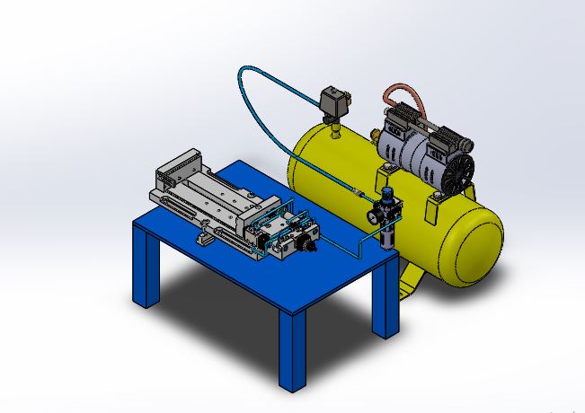 Two pneumatic cylinders and a Solenoid valve are used. Cylinder is for the forward and backward movement; it moves in both x and y axis. So, it is called a double axis welding machine.